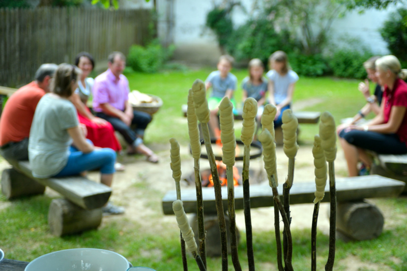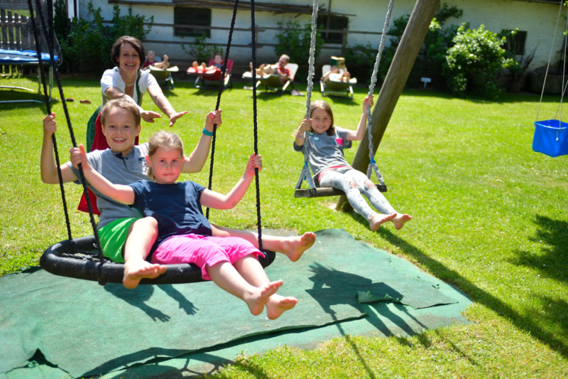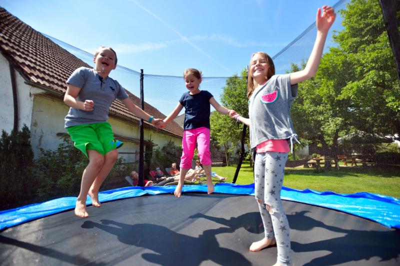 Der große Garten mit den vielen Spielgeräten (Riesentrampolin, Sandhaufen, Baumhaus, …) lässt alle Kinderherzen höher schlagen. Besonders beliebt sind bei unseren Gästen auch die Grillabende und die geselligen Runden am Lagerfeuer, wo Stockbrot, Würstel, Kartoffel, … gebraten werden.